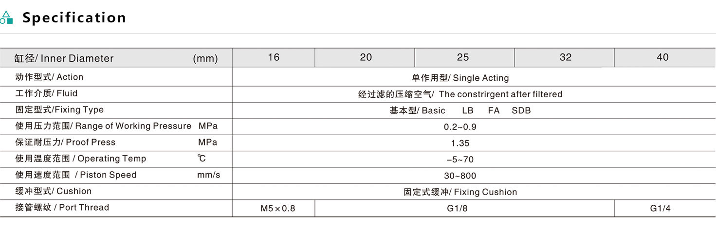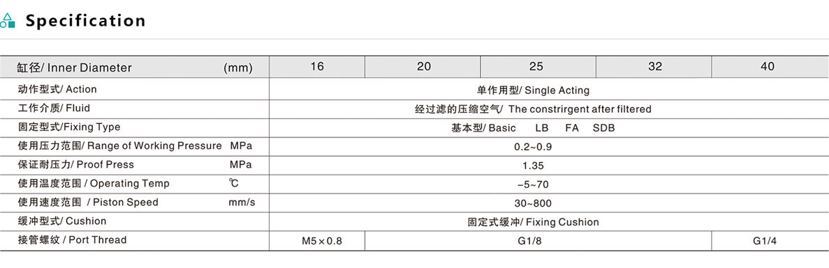 EMSAL Slim Cylinder of Aluminium Alloy(Single Acting Type)