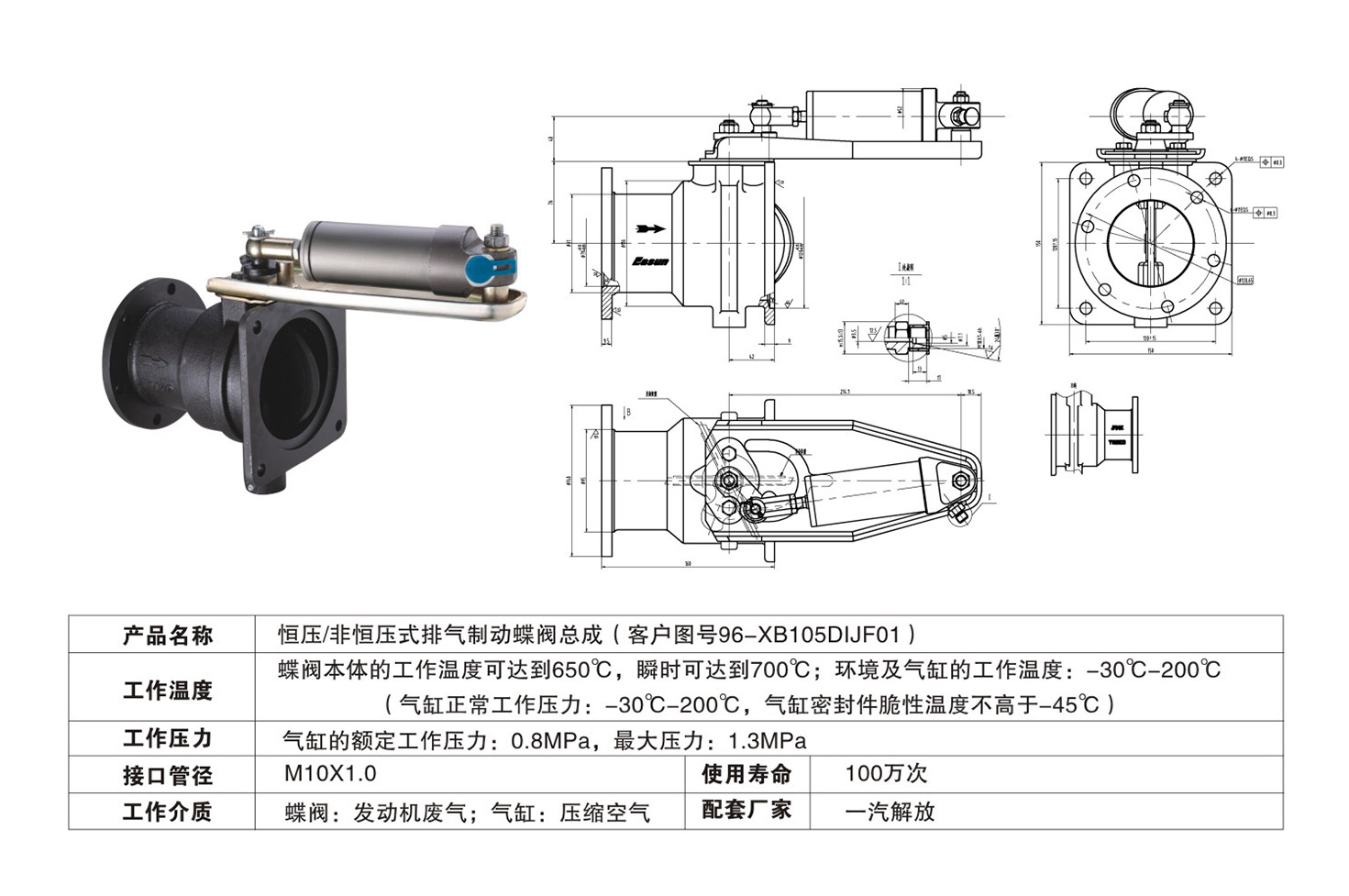 恒壓/非恒壓式排氣制動蝶閥總成(96-XB105DIJF01)