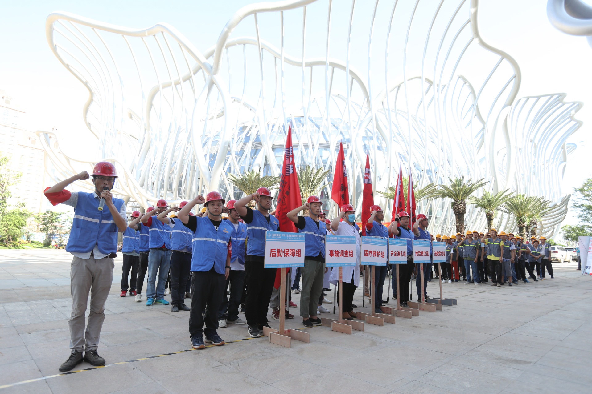 儋州市白馬井應急大隊分隊長王佳文,恒大集團海花島公司副總經理吳海,國會項目工程部經理張光成,寶鷹集團質安管理部以及海花島項目建設人員等近300人參與活動。