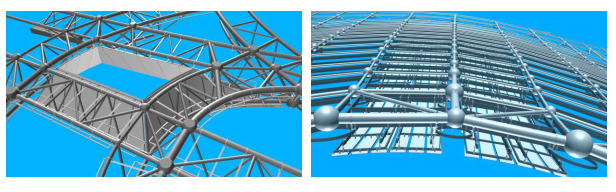 ▲采光頂及大吊頂鋁板安裝施工工藝模擬