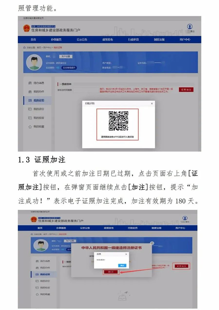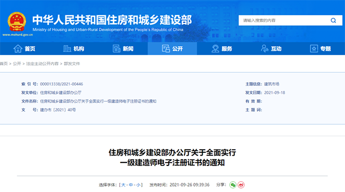 2.自2021年10月15日起,全國范圍內準予一級建造師初始注冊、增項注冊、重新注冊、延續注冊的,不再發放紙質注冊證書或加貼防偽貼;聘用單位基本信息修改的,不再加貼防偽貼;因紙質注冊證書遺失、污損或個人信息修改等需重新發放注冊證書的,不再補發或更換紙質注冊證書
