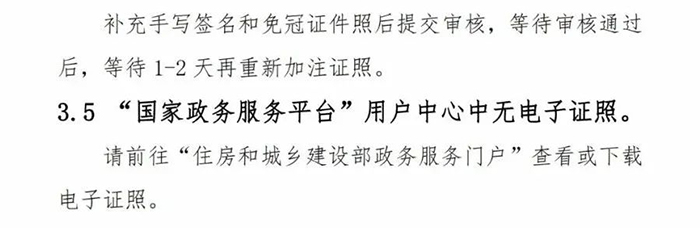 (五)電子證書與紙質注冊證書的聘用單位信息、個人基本信息、注冊專業有效期等不一致的,以電子證書信息為準。電子證書信息發生變更的,需登錄國家政務服務平臺或住房和城鄉建設部政務服務門戶重新下載。