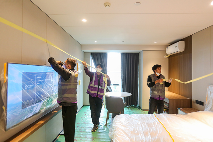 受到新一輪疫情的影響,時下,疫情防控正值關鍵時期。為了穩定疫情防控大局,助力疫情防控大計,寶鷹集團聯手云記科技組建專業團隊,放棄春節假期,全力投入到灣區會展國際酒店自消殺抗新冠病毒功能材料的施工中,助力酒店筑牢疫情防控的“第一道防線”。