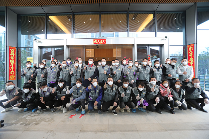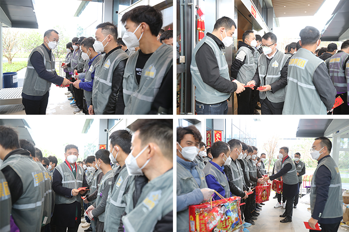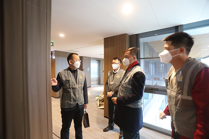 2月1日,農歷大年初一,寶鷹建設董事長薛依東、總裁于泳波、常務副總裁劉清松一行來到灣區會展國際酒店項目,檢查項目施工和疫情防控工作,看望慰問春節期間堅守崗位的一線建設者,并代表公司領導班子向節日期間奮戰在各條戰線的員工及家屬致以新春的問候和美好的祝福。