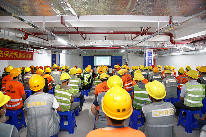 5月9日下午,深圳市建筑裝飾行業工傷保險預防培訓會在寶鷹集團深圳會展灣東城廣場(二期)公寓戶內批量精裝修施工(一標段)項目舉行。深圳市裝飾行業協會常務副會長王彥波、寶鷹集團總工程師王建國、寶鷹集團副總裁鐘志剛以及項目一線管理生產人員150余人參加培訓。