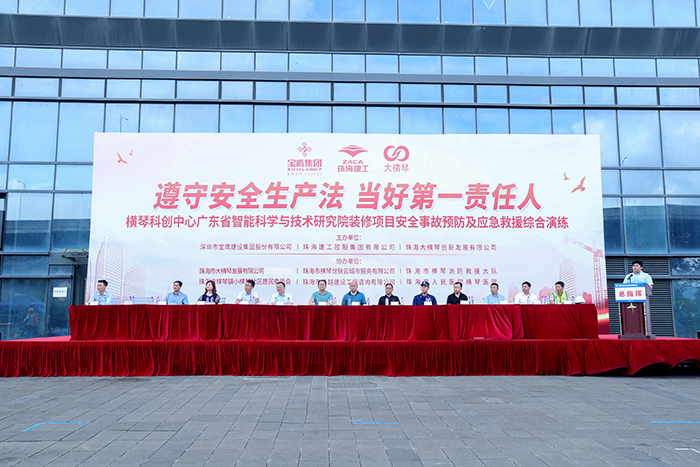 6月17日,由寶鷹集團、珠海建工、珠海大橫琴聯合主辦的安全事故預防及應急救援綜合演練在珠海橫琴廣東省智能科學與技術研究院裝飾裝修項目舉行。