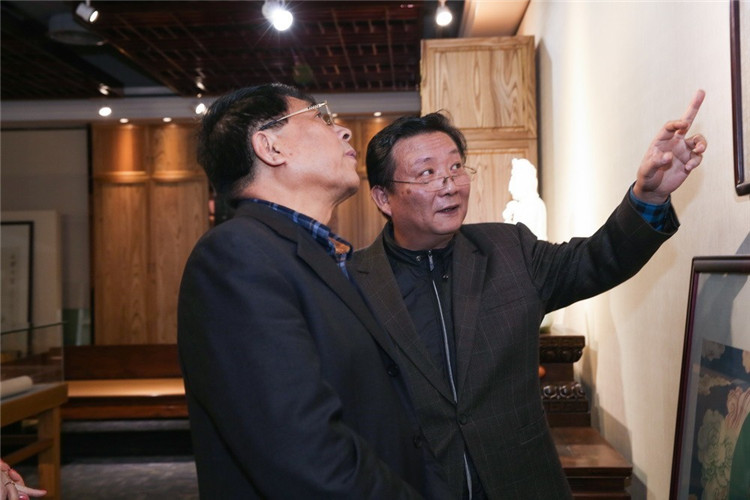 唐維國執(zhí)行副秘書長首先在王躍慶館長的陪同下參觀了寶鷹美術館,共同欣賞了寶鷹美術館珍藏的書畫作品和藝術品。