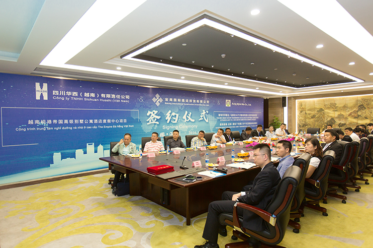 寶鷹集團副總裁、寶鷹國際建設(shè)投資有限公司董事長古樸與華西集團越南公司總經(jīng)理羅征祥簽訂合同