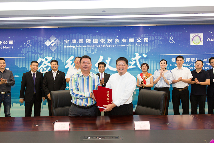 寶鷹集團副總裁、寶鷹國際建設(shè)投資有限公司董事長古樸與緬甸AMM公司U ZAW ZAW OO董事長簽訂合同
